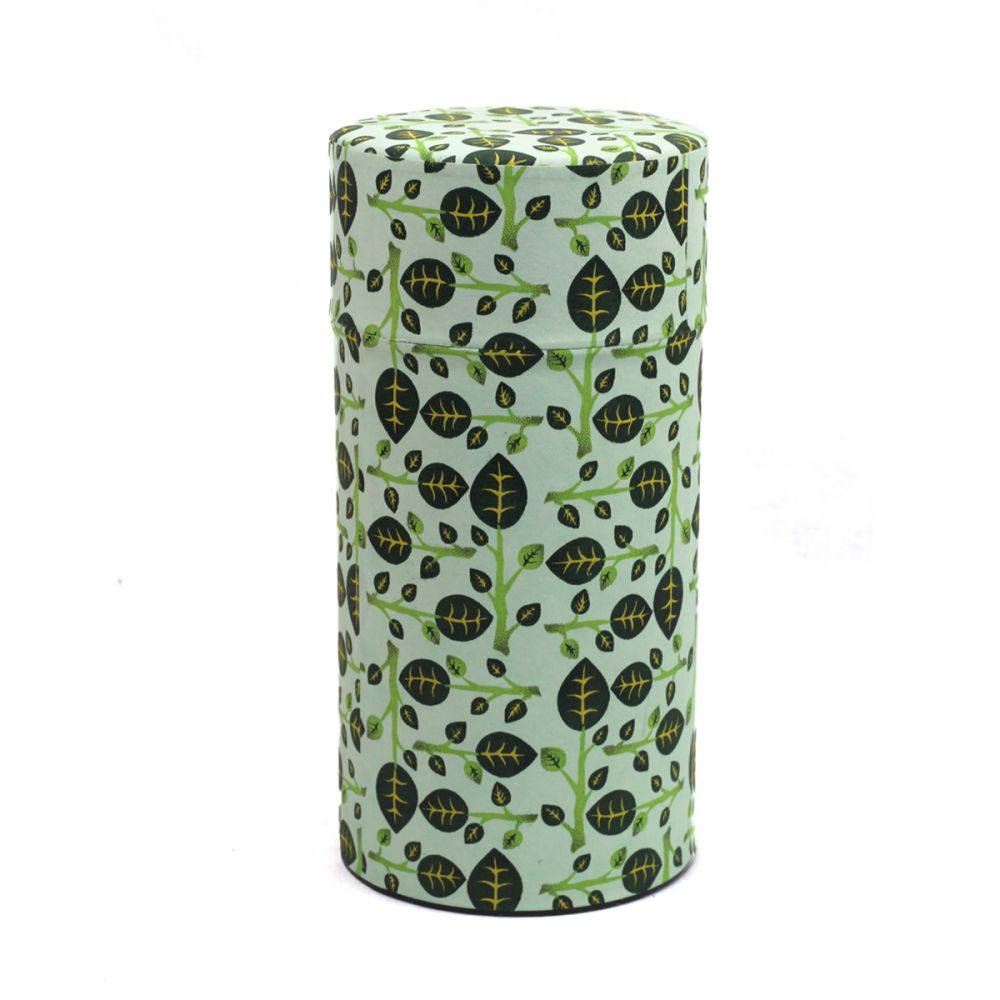 Elegant tea tin wrapped in traditional Japanese “Washi” paper.