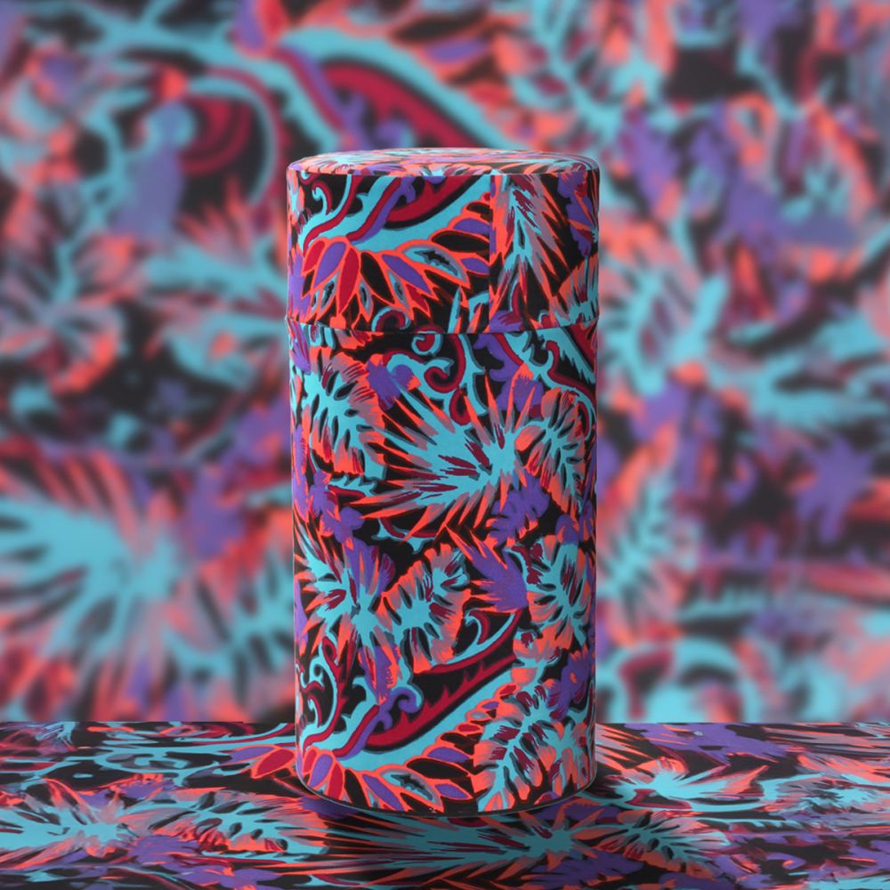 Elegant tea tin wrapped in traditional Japanese “Washi” paper.