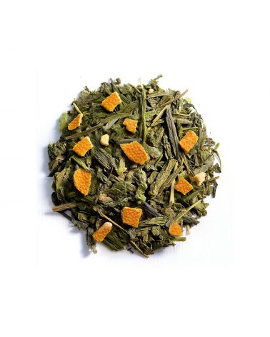 Ce thé vert de Chine est parfumé à la pomme, orange, cannelle, amande, et vanille bourbon. Une belle alliance de fraicheur aux notes fruitées et délicatement épicées, rappelant la chaleur de Noël.